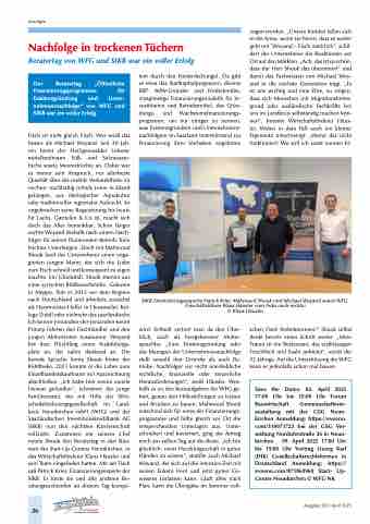 wird. Schnell verliert man da den Über- blick, auch als hiergeborener Mutter- sprachler. „Eine Existenzgründung oder das Managen der Unternehmensnachfolge stellt sowohl den Gründer als auch Be- triebs- Nachfolger vor nicht unerhebliche rechtliche, finanzielle oder steuerliche Herausforderungen“, weiß Häusler. Wes- halb es zu den Kernaufgaben der WFG ge- hört, genau dort Hilfestellungen zu leisten und Brücken zu bauen. Mahmoud Shook entschied sich für eines der Finanzierungs- programme und füllte gleich vor Ort die entsprechenden Unterlagen aus. Unter- schrieben und kuvertiert, ging der Antrag noch am selben Tag auf die Reise. „Ich bin glücklich, mein Herzblutgeschäft in guten Händen zu wissen“, strahlte auch Michael Weyand, der sich auf die intensive Zeit mit seinen Enkeln freut und jetzt guten Ge- wissens loslassen kann. Läuft alles nach Plan, kann die Übergabe im Sommer voll-