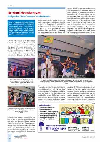 brachten, war einfach Lebensfreude pur und so war es auch nicht verwunderlich, dass nicht nur die Bühne bebte, sondern es auch in der bis auf den letzten Platz be- setzten Halle kein Halten mehr gab. Den Start in die Veranstaltung machte wieder die bezaubernde Lilly Heinrich mit ihrem großartigen Gesang und die beiden Mo-