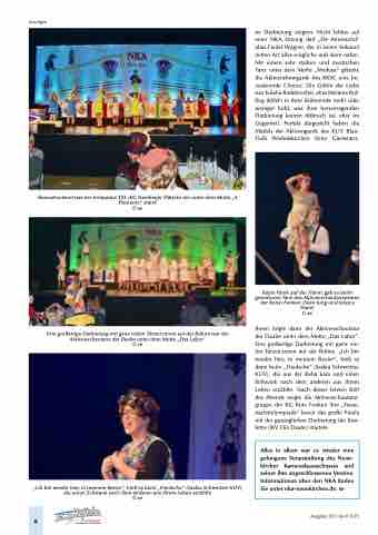 ne Darbietung zeigten. Nicht fehlen auf einer NKA Sitzung darf „De Annerschd“ alias Fiedel Wagner, der in seiner bekannt netten Art alles mögliche aufs Korn nahm. Mit einem sehr starken und mystischen Tanz unter dem Motto „Medusa“ glänzte die Aktivenshowgarde des KKW, eine be- zaubernde Choreo. Die Göttin der Liebe war Eulalia Radebrecher, alias Melanie Ruf- fing (KKW) in ihrer Büttenrede mehr oder weniger hold, was ihrer hervorragenden Darbietung keinen Abbruch tat, eher im Gegenteil. Perfekt dargestellt haben die Mädels der Aktivengarde des KUV Blau- Gelb Wiebelskirchen ihren Gardetanz.