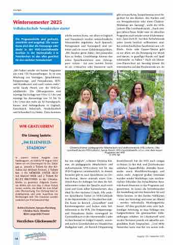In unserer letzten Ausgabe vom Stadtmagazin „es Heftche“® August 2025 hatten wir ein Gewinnspiel für Sie. Dabei gab es jeweils 2 Tickets für den Kri- mibus mit Michael Friemel, 2 Tickets Kat. 2 für MÖRDER UNTER SICH mit Maricel Wölk und 2 Tickets für BLUES BROTHERS in der Christus- kirche zu gewinnen. Folgende Gewin- ner dürfen sich nun über 2 dieser Tickets freuen, welche, das bleibt bis zum Erhalt eine Überraschung. Die Ziehung fand im Zufallsprinzip und unter Ausschluss des Rechtsweges statt. Die Gewinner werden zusätzlich per Post benachrichtigt.