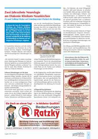 In diesem Jahr kann die Neurologische Abteilung des Diakonie Klinikums gleich doppelt feiern, denn ihr Chefarzt, Dr. med. Volkmar Fischer, ist von An- fang an dabei. In den letzten 20 Jahren hat er die Neurologie zu einem überre- gionalen Anlaufpunkt für die Abklärung und Behandlung von Patienten mit neu- rologischen Erkrankungen aufgebaut.