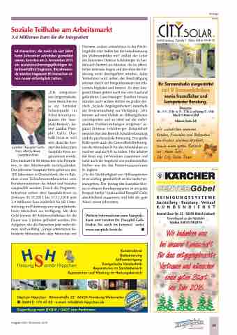 Dies bedeute für 80 Menschen eine Perspek- tive, in den Arbeitsmarkt zurückzufinden. Das Jobcenter Saarpfalz-Kreis gehört zu den 105 Jobcentern in Deutschland, die im Rah- men eines Teilnahmewettbewerbes vom Bundesministerium für Arbeit und Soziales ausgewählt wurden. Durch die Programm- teilnahme stehen dem Saarpfalz-Kreis im Zeitraum 01.11.2015 bis 31.12.2018 jetzt 3,4 Millionen Euro zusätzlich für die Unter- stützung und Förderung von langzeitarbeits- losen Menschen zur Verfügung. Mit dem Geld können 80 Arbeitsverhältnisse für die Dauer von 3 Jahren gefördert werden. Die Aufgaben, die die Menschen jetzt wahrneh- men, sind vielfältig. „Einige unterstützen be- hinderte Mitmenschen oder Menschen mit