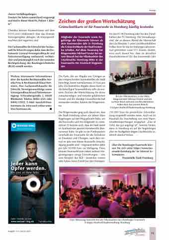 Der Bürgermeister ging auch darauf ein, dass die Stadt Homburg schon vor Jahren klare Regelungen auf den Weg gebracht habe, um die Feuerwehr und ihre Mitglieder zu unter- stützen. Er betonte auch, dass die Stadt damit im Saarland eine gewisse Vorreiterrolle über- nommen habe. So gibt es ein Punktesystem innerhalb der Feuerwehr für die Teilnahme an Einsätzen und Übungen, nach dem ein- mal im Jahr eine kleine finanzielle Entschä- digung gezahlt wird – insgesamt stehen dafür pro Jahr 30.000 Euro zur Verfügung. Dazu können Feuerwehrleute neben anderen Ver- günstigungen einige Einrichtungen – wie zum Beispiel das KOI - kostenlos nutzen oder haben freien Eintritt bei den Heimspie-