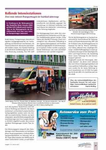 Der für den Rettungsdienst im Saarland ver- antwortliche Zweckverband für Rettungs- dienst und Feuerwehralarmierung (ZRF) und der Ärztliche Leiter des Rettungsdienstes im Saarland San.-Rat Dr. Thomas Schlechtrie- men haben während einer einjährigen Pla- nungs- und Beschaffungsphase in einem ge- meinsamen Konzept mit den beteiligten Kli- niken und Organisationen die Ausstattung dieser neuen Fahrzeuge für den Intensiv- transport optimiert.