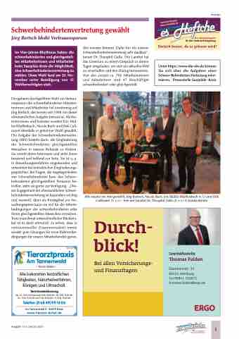 Die geheim durchgeführte Wahl zur Vertrau- ensperson der schwerbehinderten Mitarbei- terinnen und Mitarbeiter fiel einstimmig auf Jörg Bertsch, der bereits seit 1998 mit dieser ehrenamtlichen Aufgabe betraut ist. Als Ver- treterrinnen und Vertreter wurden Eric Mül- ler-Weiffenbach, Nicole Bach und Dirk Cull- mann ebenfalls in geheimer Wahl gewählt. Die Aufgabe der Schwerbehindertenvertre- tung (SBV) besteht darin, die Eingliederung der Schwerbehinderten gleichgestellten Menschen in unserer Behörde zu fördern. Sie vertritt deren Interessen und steht ihnen beratend und helfend zur Seite. Sie ist u. a. in Bewerbungsverfahren eingebunden und unterstützt bei betrieblichen Eingliederungs- gesprächen. Bei Fragen, die Angelegenheiten von Schwerbehinderten bzw. den Schwer- behinderten gleichgestellten Personen be- treffen,stehtsiegernezurVerfügung. „Die- ses Engagement der ehrenamtlichen Schwer- behindertenvertretung ist besonders wichtig und wertvoll, denn als Bindeglied zur Ver- waltungsspitze kann sie viel für die Arbeits- bedingungen der schwerbehinderten oder ihnen gleichgestellten Menschen erreichen. Trotz manchmal unterschiedlicher Blickwin- kel ist es doch erfreulich zu sehen, dass in vertrauensvoller Zusammenarbeit immer wieder gute Lösungen für neue Rahmenbe- dingungen für unsere Mitarbeitenden gefun-