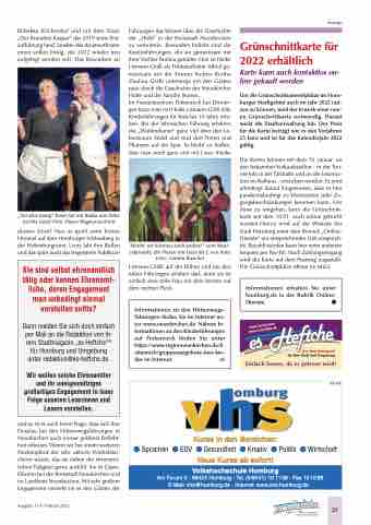 Um die Grünschnittsammelplätze im Hom- burger Stadtgebiet auch im Jahr 2022 nut- zen zu können, wird der Erwerb einer neu- en Grünschnittkarte notwendig. Darauf weist die Stadtverwaltung hin. Der Preis für die Karte beträgt wie in den Vorjahren 25 Euro und ist für das Kalenderjahr 2022 gültig.